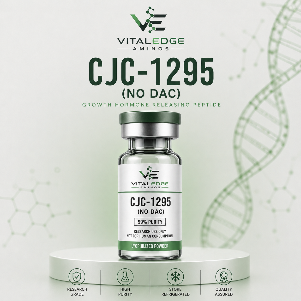 CJC-1295 (No DAC) is a synthetic peptide analog of growth hormone-releasing hormone (GHRH), developed for research into growth hormone regulation, metabolism, and physiological performance. Unlike the DAC-modified version, CJC-1295 (No DAC) has a shorter half-life, allowing for more controlled and pulsatile stimulation of growth hormone release in experimental settings. This peptide is widely studied for its potential to increase natural growth hormone and insulin-like growth factor-1 (IGF-1) levels, which may influence metabolic activity, body composition, and cellular recovery processes. Its mechanism of action closely mimics the body’s natural hormone release patterns, making it a valuable compound in research focused on endocrine function. CJC-1295 (No DAC) is also of interest in studies related to fat metabolism, recovery, and overall physiological optimization. Its short-acting nature provides flexibility in experimental protocols and timing of administration.