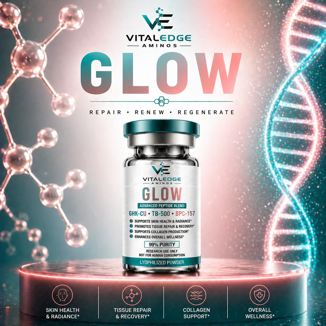 GLOW is a research compound explored for skin support, radiance, and cellular repair pathways.